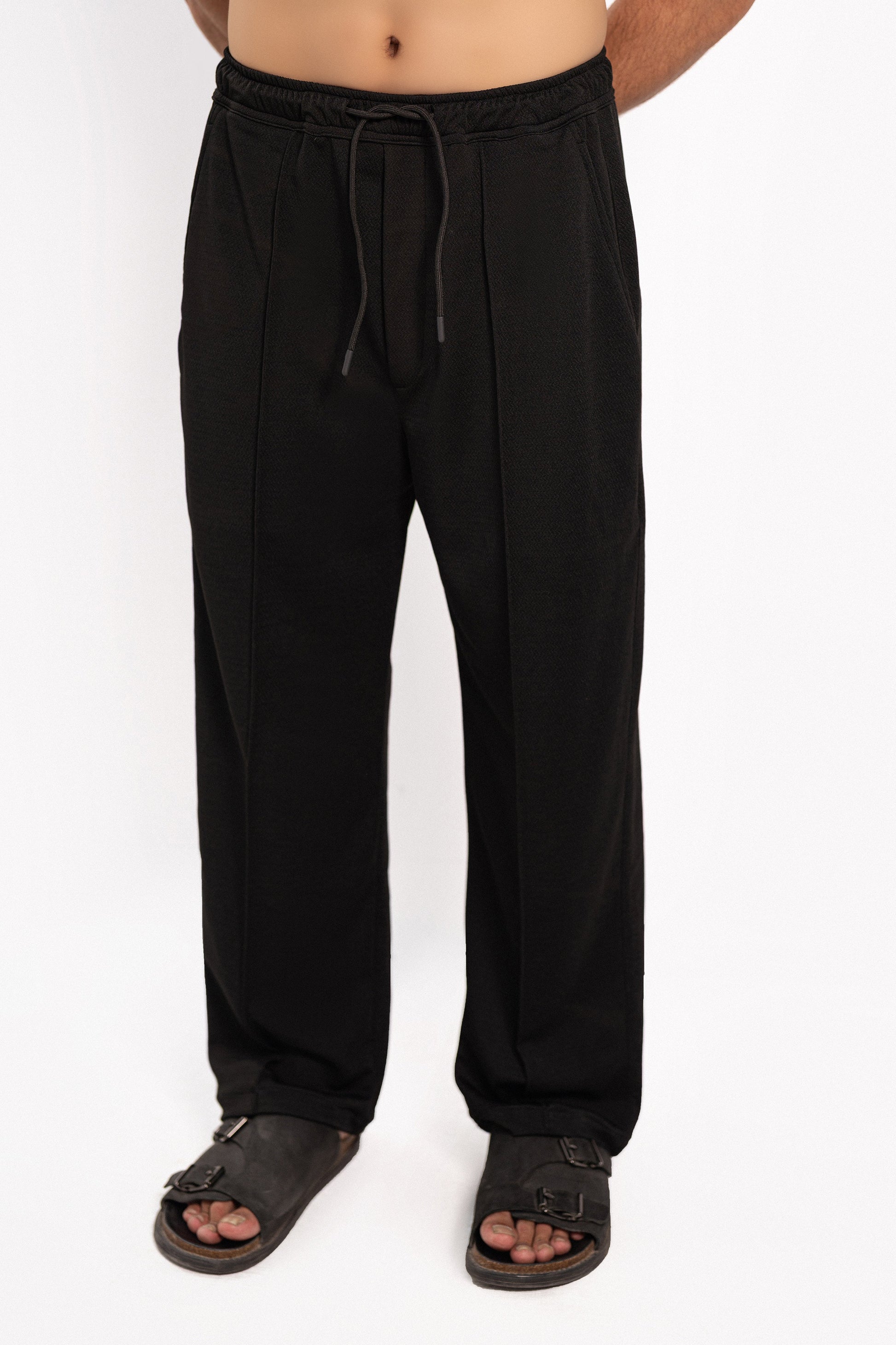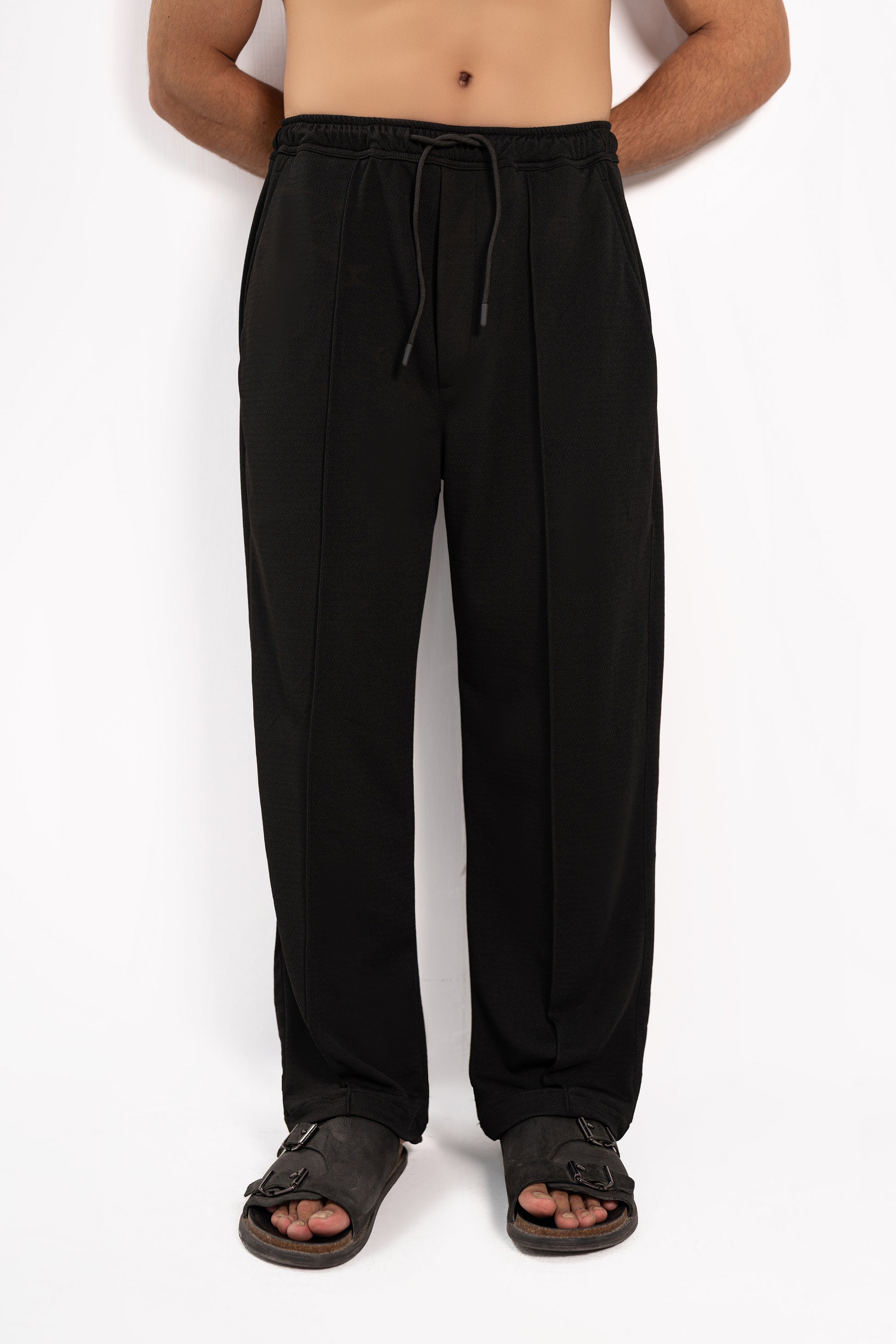 Features: These white pants are crafted from a textured stretchable fabric providing both style and comfort. The front pintex detail adds a refined touch, while the adjustable elastic waist with a drawstring ensures a customized fit. The wide-leg, relaxed fit offers a contemporary, effortless look that's perfect for any occasion.