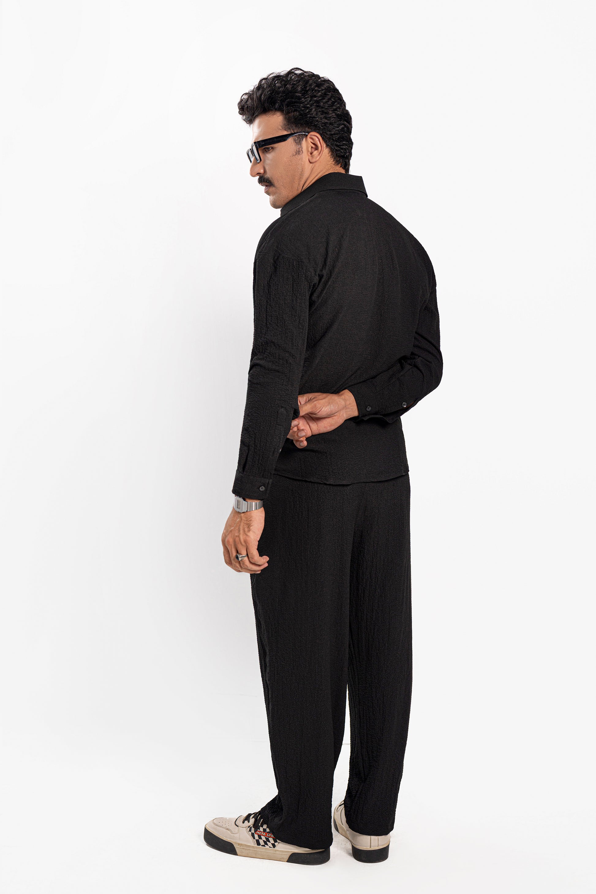 Features: This refined co-ord set combines effortless style with all-day comfort. The textured trousers, made from a Creased linen fabric, feature a wide-leg relaxed fit, and an adjustable elastic waist with drawstring for a tailored feel. Paired with an oversized Full Sleeves Point collar shirt, the set exudes timeless old-money elegance, perfect for making a sophisticated statement.