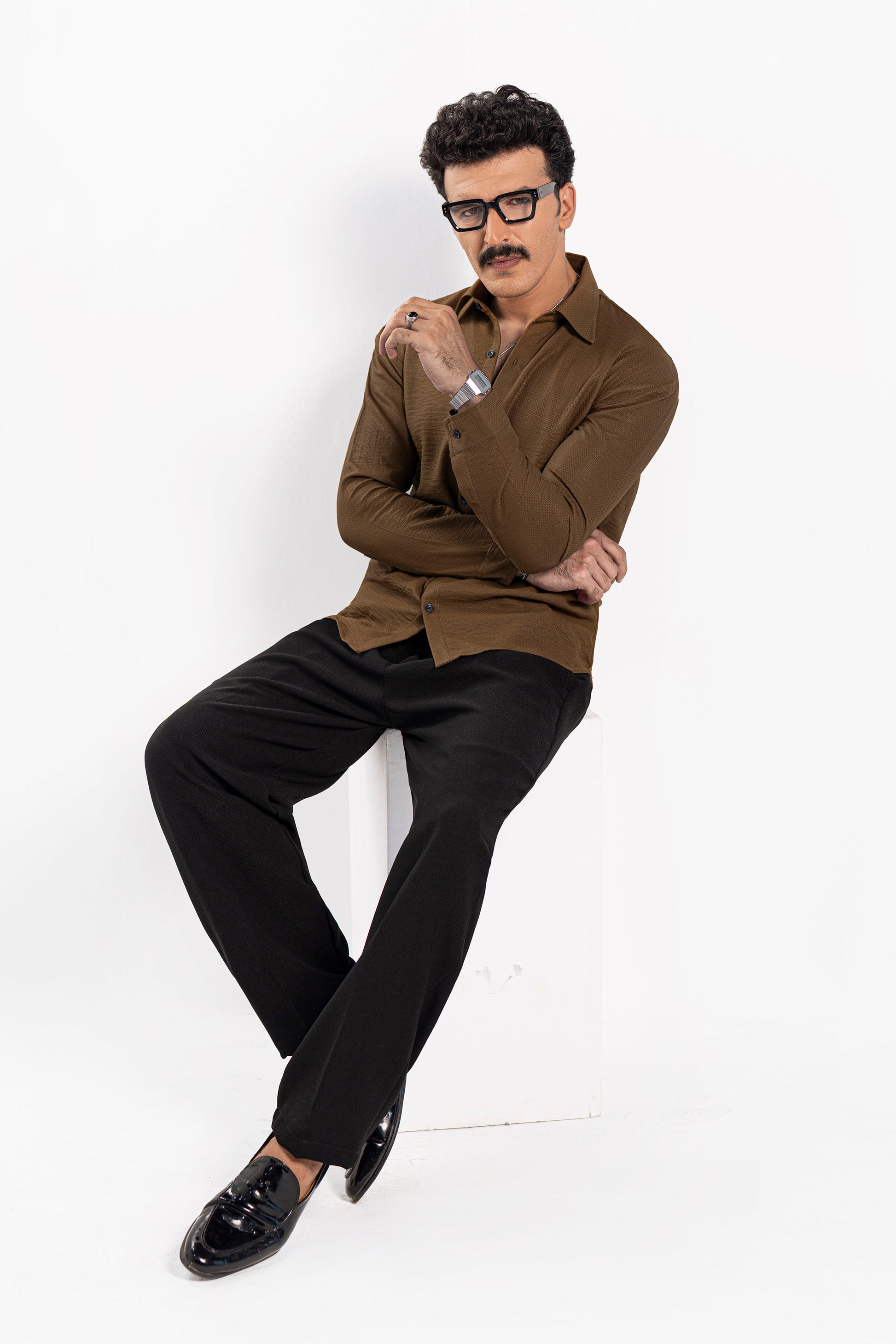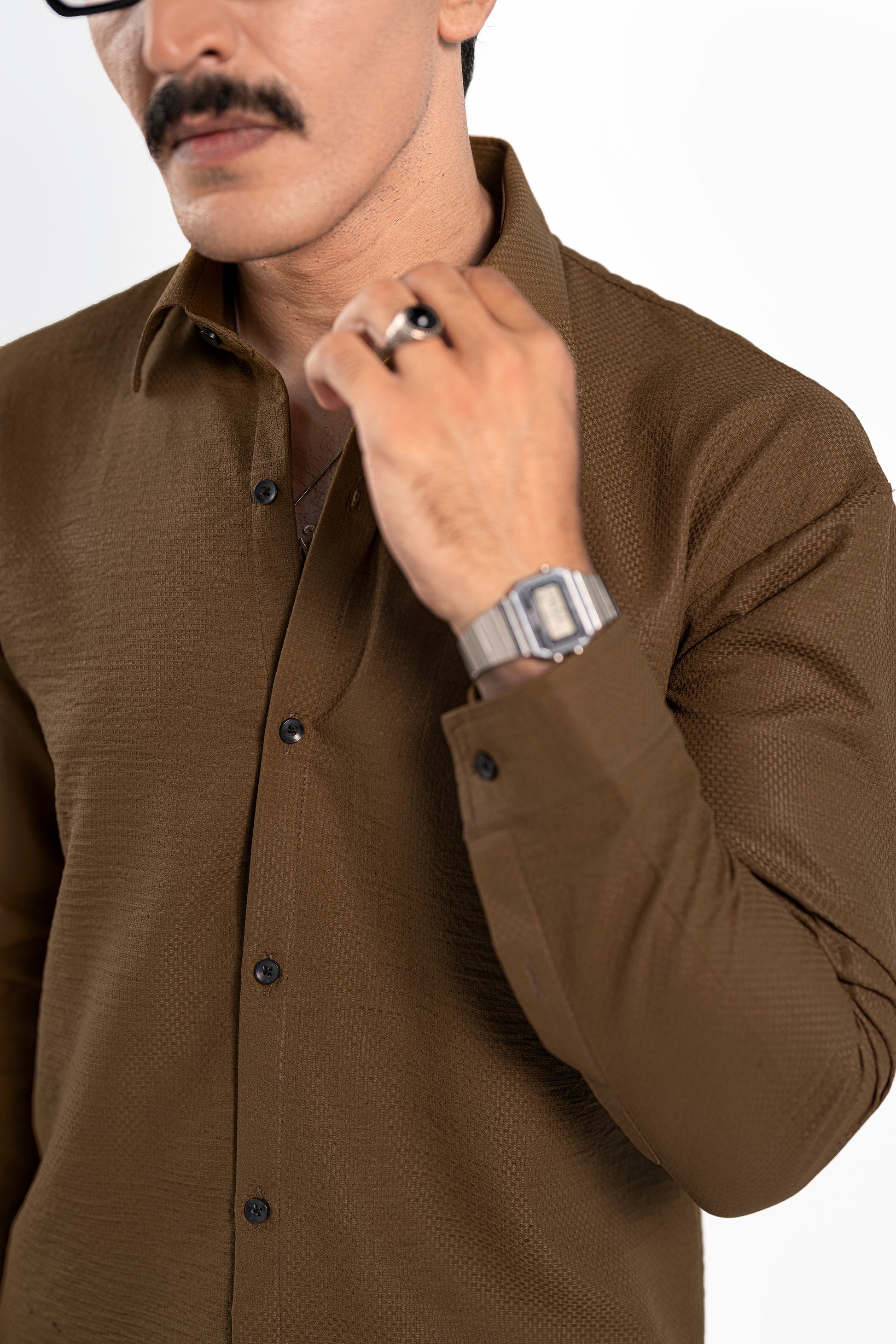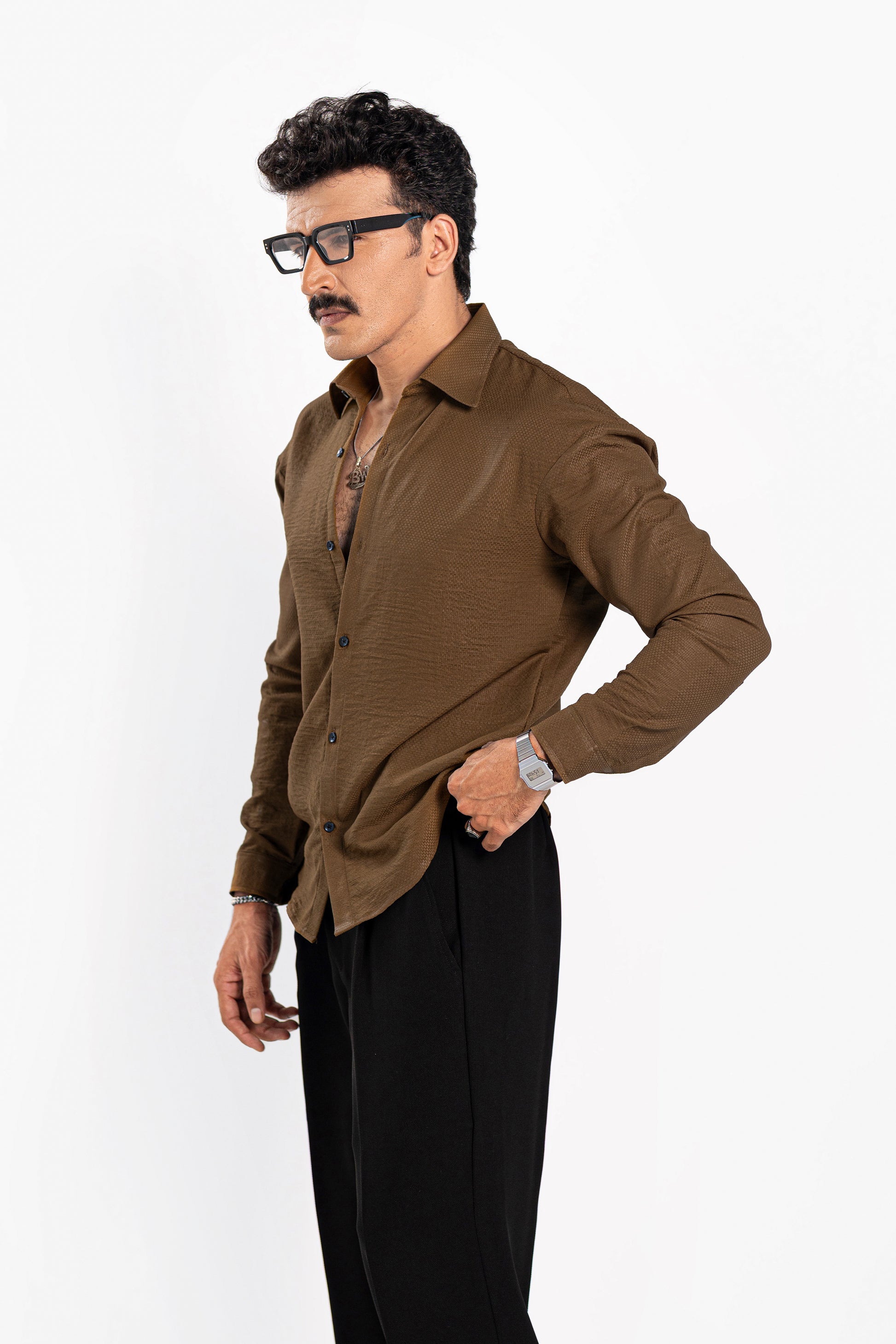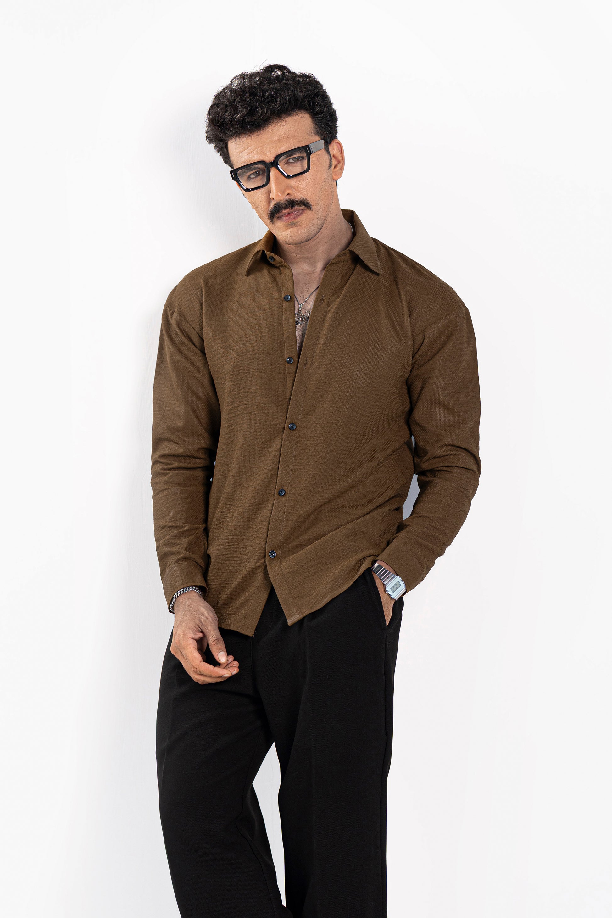 Textured shirt, offering a simple yet casual look with comfy feel. Designed in oversized pattern for a relaxed, loose-fit casual shirt vibe.