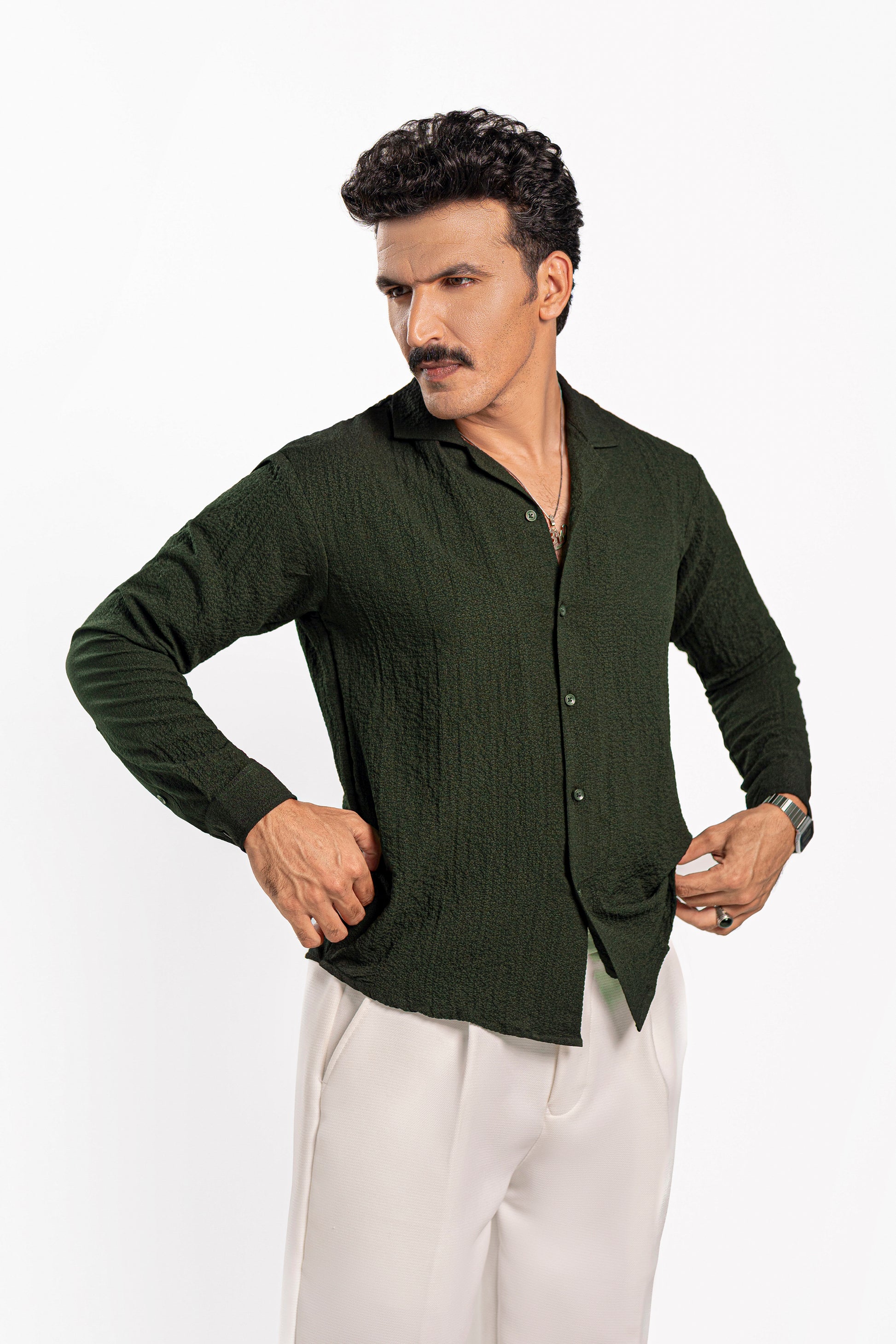 Basic fit with a Classic Cuban collar and Full sleeves. -