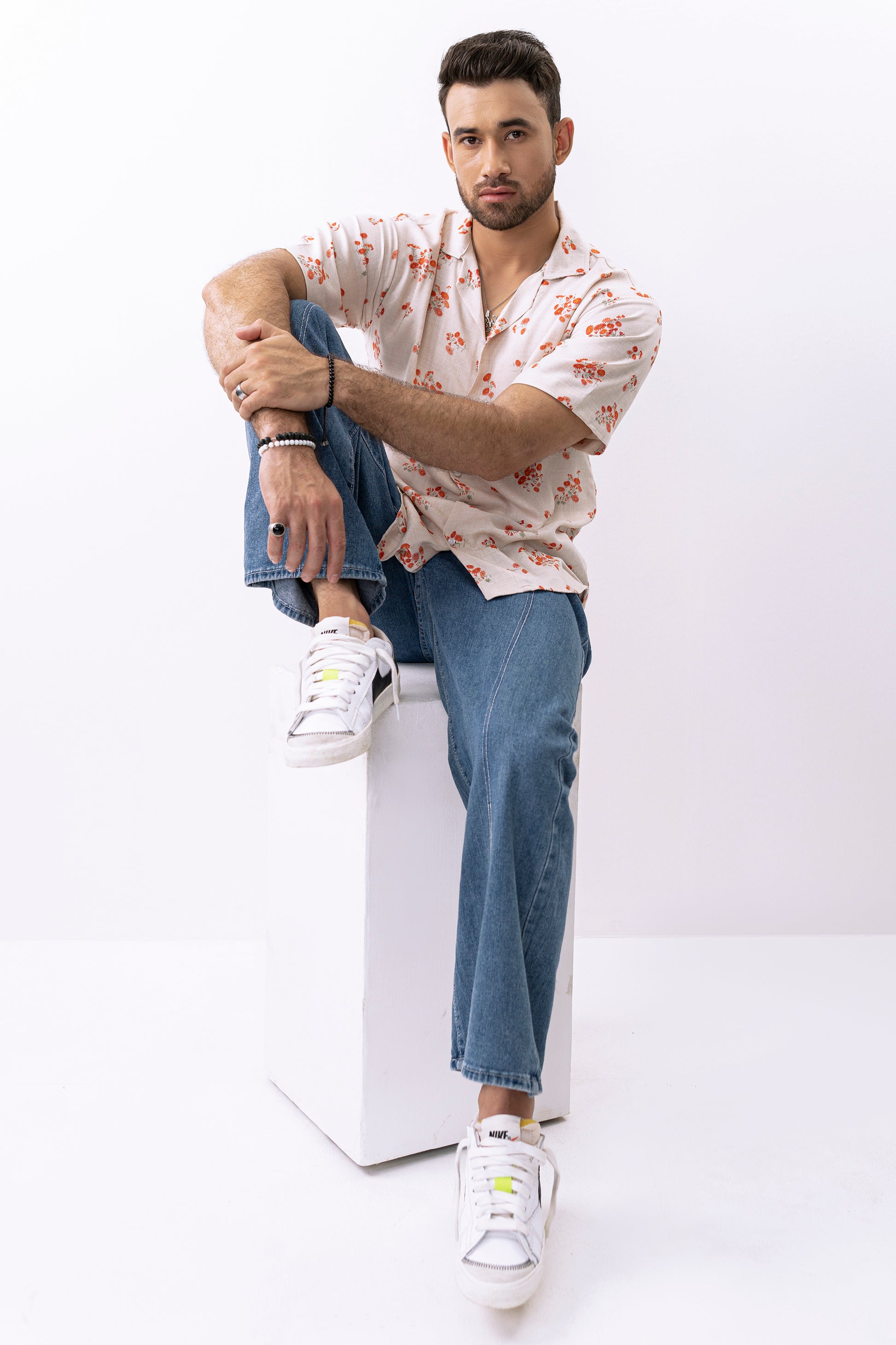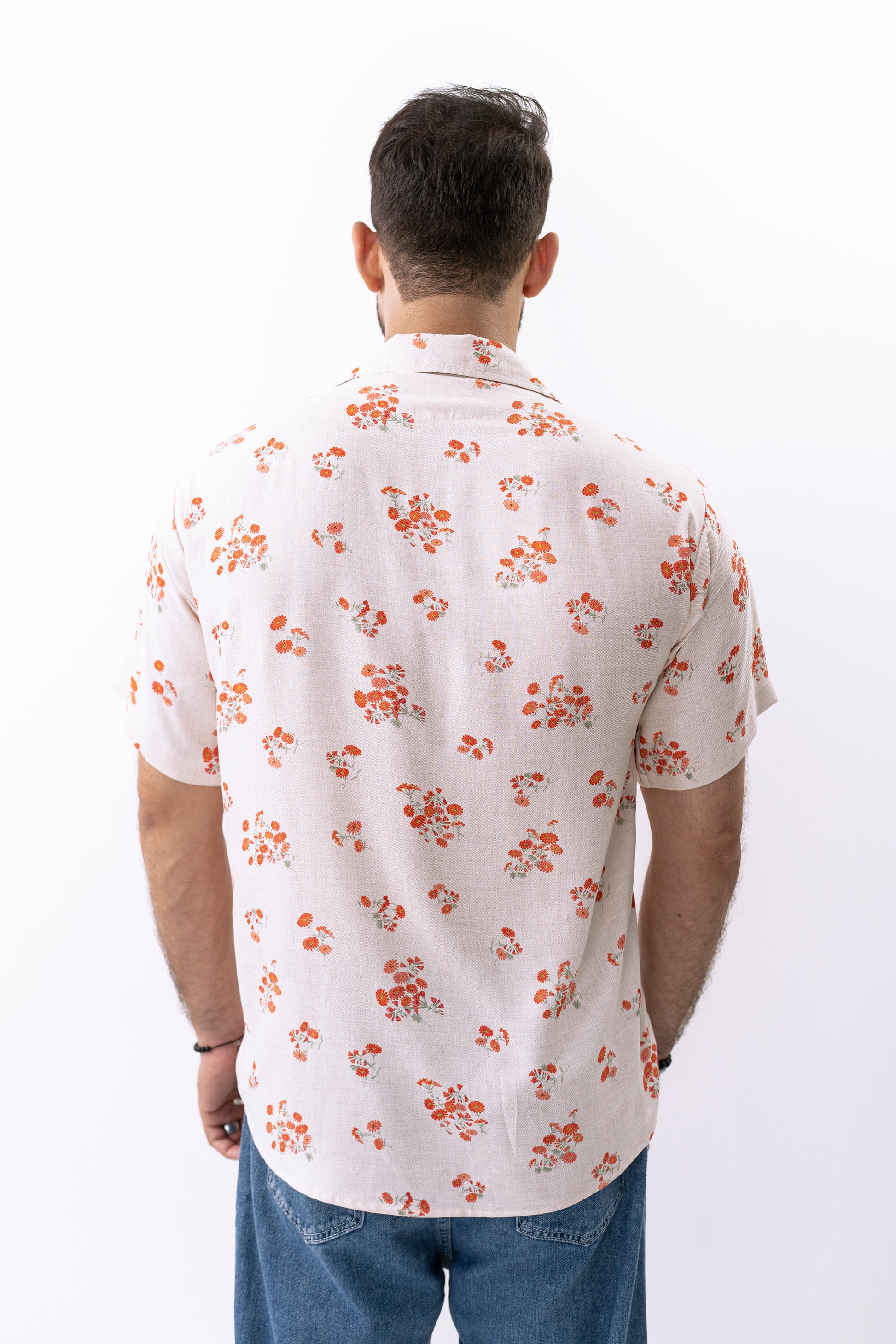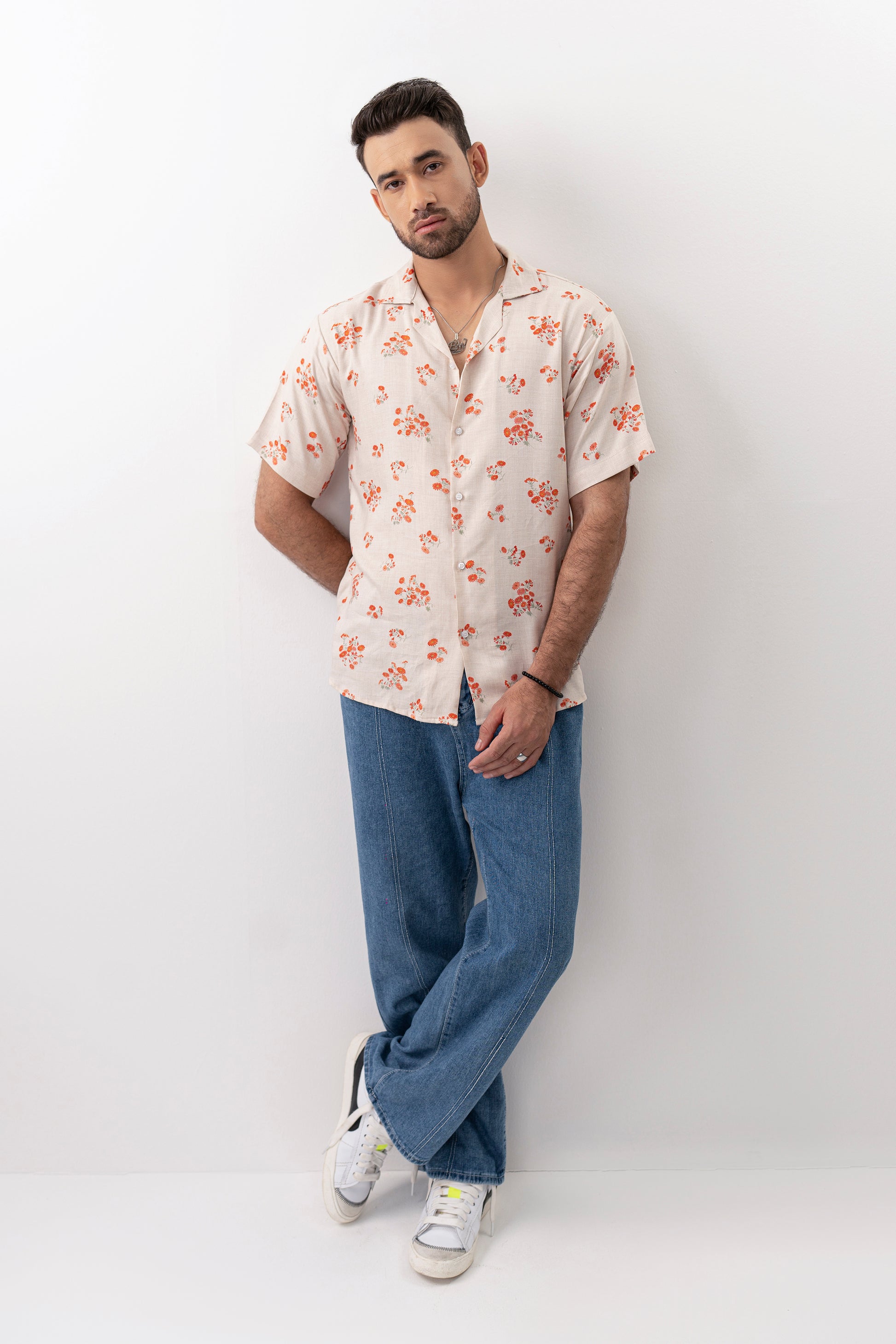 Printed Casual shirt featuring a Cuban collar and half sleeves